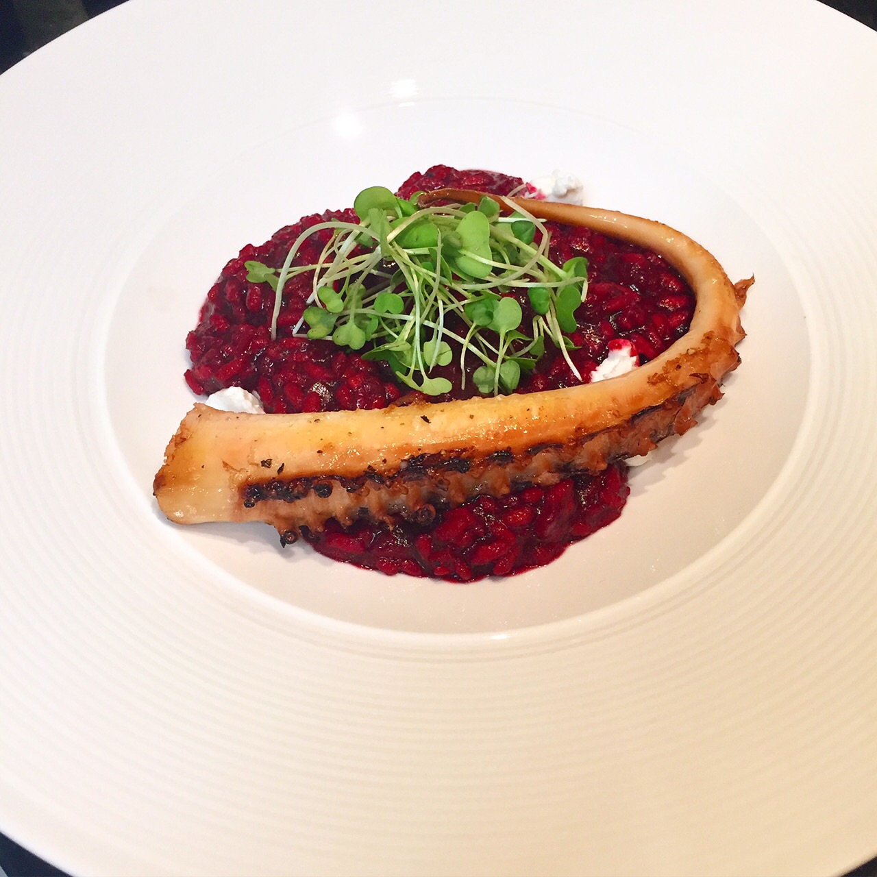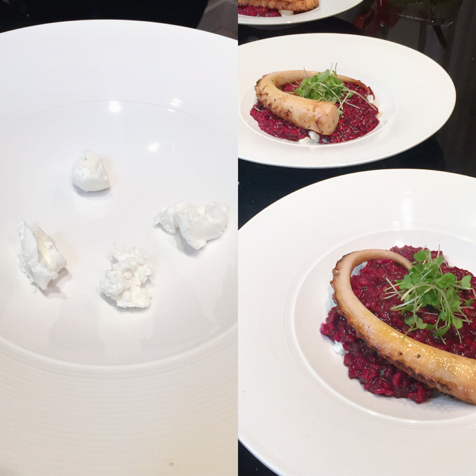 Risoto de Beterraba com Queijo de Cabra e Polvo Grelhado