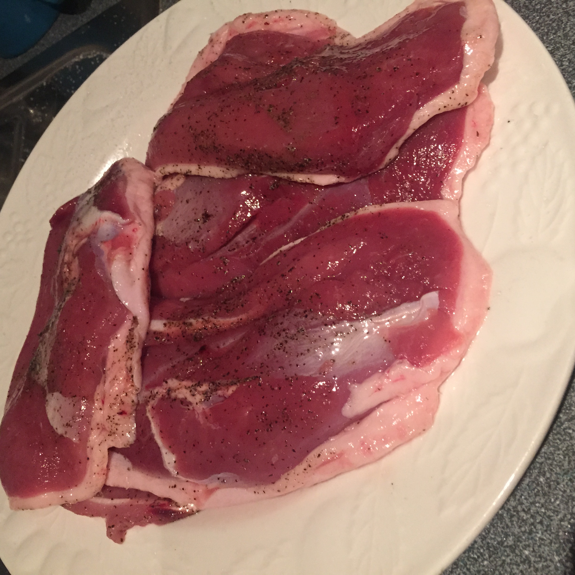 Temperar com sal e pimenta. O peito do pato é simples de fazer… o segredo é selar e deixar rosadinho por dentro.