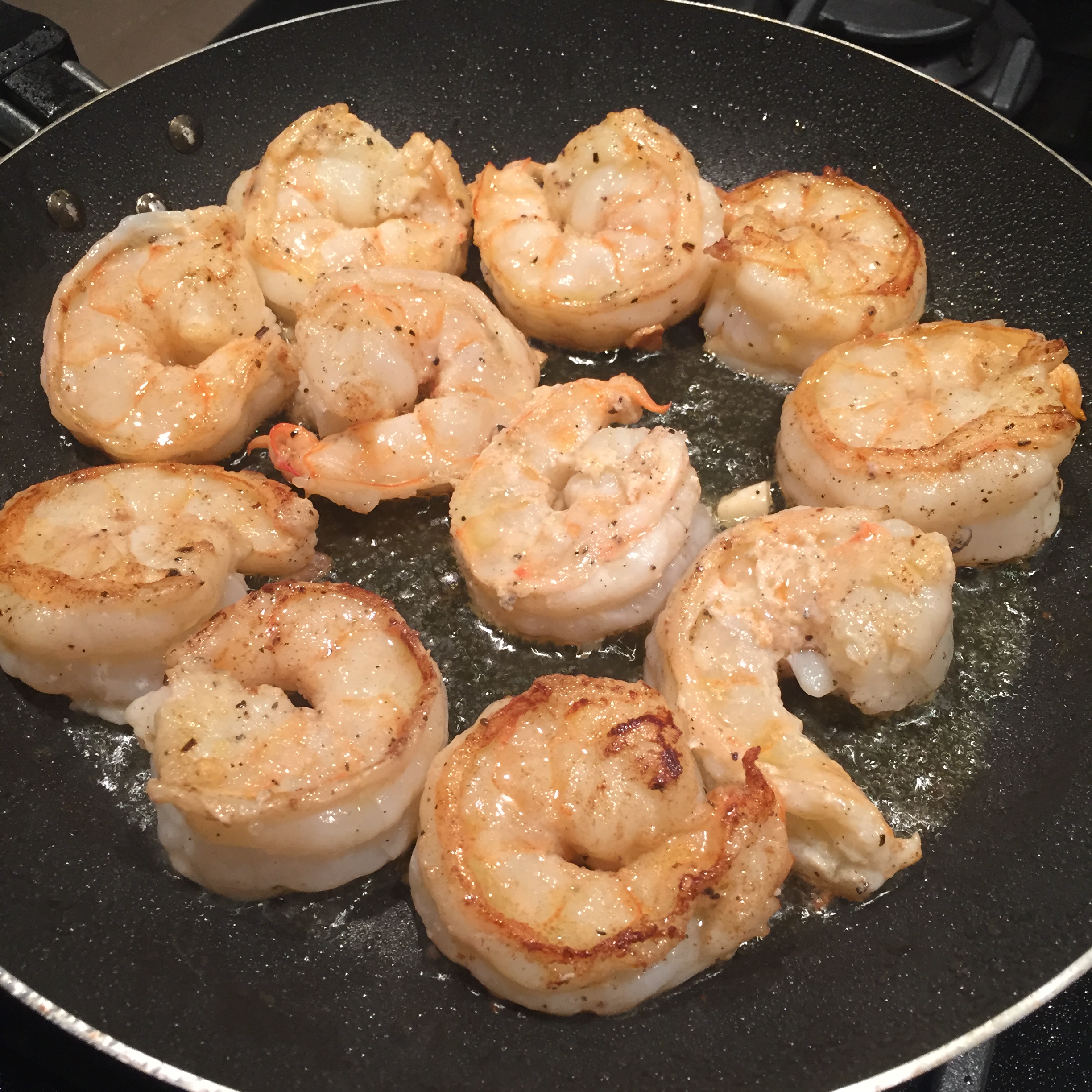 Em uma frigideira aquecida, coloque o azeite e salteie o camarão até que esteja rosado. Esse processo leva aproximadamente 5 minutos.